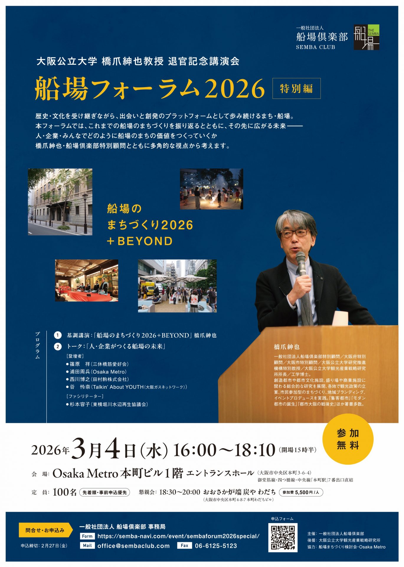 ◆船場フォーラム2026特別編「船場のまちづくり2026+BEYOND」◆