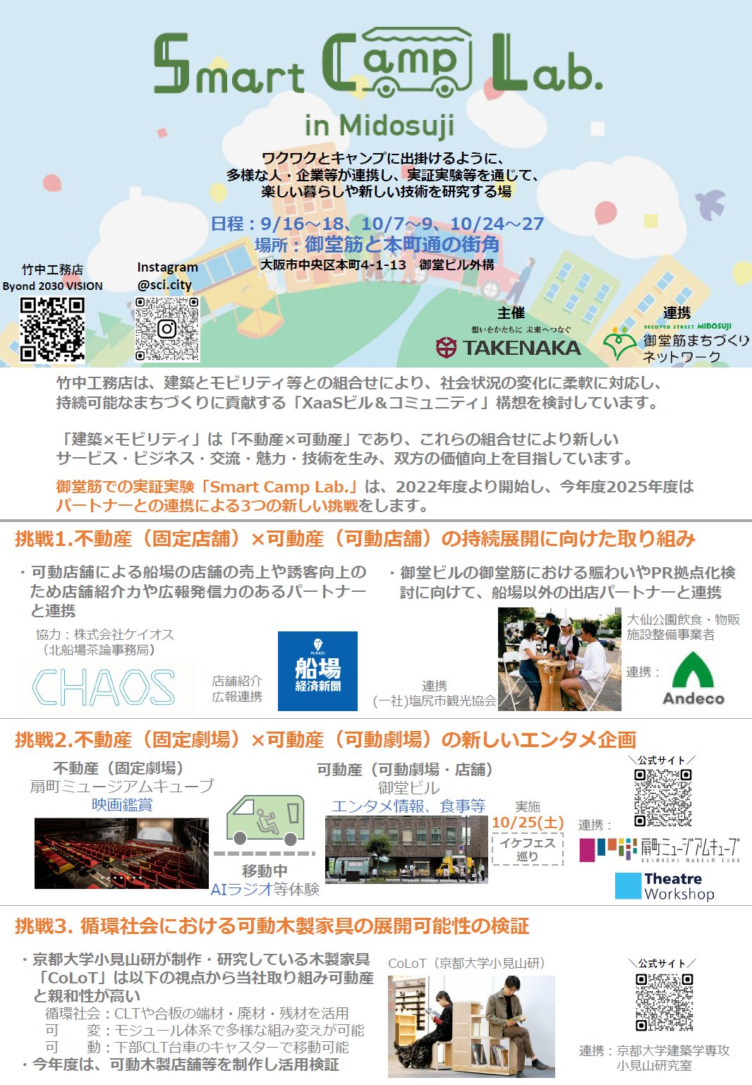 ワクワクとキャンプに出掛けるように、多様な人・企業等が連携し、楽しい暮らしや新しい技術を研究する場「Smart Camp Lab.」 9/16(火)~9/18(木)、10/7(火)~10/9(木)、10/24(金)〜10/27(月)の3回に分けて開催します。